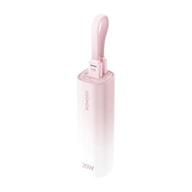 Romoss PSC05P mini-powerbank kombinerar kompakt design med elegant estetik. Dess rosa hölje med en subtil toning påminner om en körsbärsträdgårds blomning, och dess lilla storlek – jämförbar med en flaska foundation – gör att den lätt får plats i fickan, handväskan eller till och med bredvid dina nycklar. Det är det perfekta valet för dig som värdesätter rörlighet och stil och behöver en pålitlig energikälla under hela dagen.