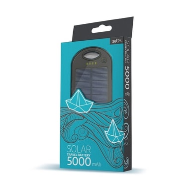 Settys solcells-powerbank kan laddas upp via solenergi eller via microUSB. Denna lilla powerbank är perfekt att ha med sig på resan där det är dåligt med elluttag men där det finns gott om solljus. Powerbanken har ett vattentätt hölje och kommer även med en karbinhake som gör det enkelt att fästa powerbanken i ryggsäcken. Med två USB portar har du möjlighet att ladda två enheter samtidigt. Laddkabel till enheter ingår ej.Specifikation: