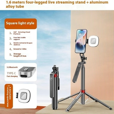 Vill du fånga dina bästa vinklar med perfekt ljus – även i svåra förhållanden? Då är P185mini med fyrbensstativ och kvadratiskt fyllnadsljus din nya favorit. Denna kompakta selfiepinne är mycket mer än ett vanligt mobilstativ. Med sin stabila konstruktion, inbyggda fyllnadsljus och avtagbara Bluetooth-fjärrkontroll får du total frihet att skapa proffsiga bilder och videor – utan hjälp från någon annan. Oavsett om du filmar reels, tar selfies, gör makeupvideos eller chattar via videosamtal, levererar den skarp bild och jämn belysning varje gång.