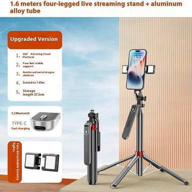 Oavsett om du fotograferar content till sociala medier, livestreamar eller bara vill få till den där perfekta selfien – P185mini Dual V2 är lösningen du har väntat på. Den kombinerar ett stabilt fyrbent stativ med dubbla fyllnadsljus, roterbar hållare och avtagbar Bluetooth-fjärrkontroll, vilket gör att du alltid har full kontroll över ljus, vinkel och avtryck. Den dubbla belysningen ger ett jämnt, mjukt ljus som minskar skuggor och får dina bilder att se proffsiga ut, även i svagt ljus.