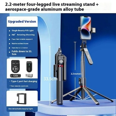 Den avtagbara LED-lampan lyfter varje bild, oavsett ljusförhållande. Och med två separata Bluetooth-fjärrkontroller – en optimerad för TikTok/Douyin – kan du snabbt växla mellan olika innehållsstilar. Skapa fritt, utan begränsningar.