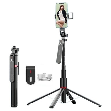 Selfiepinnen är tillverkad i tålig ABS-plast och aluminiumlegering som ger både hållbarhet och låg vikt. Den avancerade anti-shake-tekniken minskar vibrationer, vilket ger stadiga resultat även vid full förlängning. Den medföljande Bluetooth 5.2-fjärrkontrollen gör att du kan ta bilder trådlöst på upp till 10 meters avstånd, medan fyllnadslampan förbättrar bildkvaliteten i svagt ljus – perfekt för selfies, livesändningar och videoinspelningar på kvällen.
