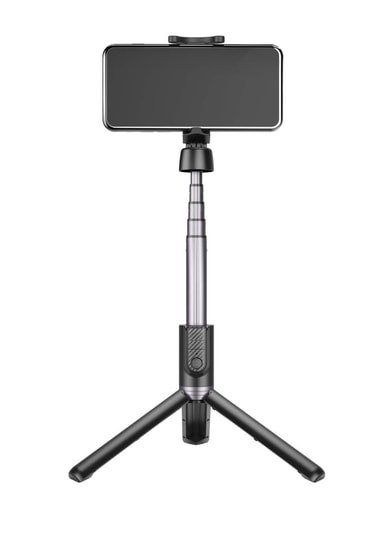 - Pinnen har ett integrerat teleskop-handtag som enkelt kan expanderas till ett stativ och fjärrkontrollen kan separeras från själva produkten.