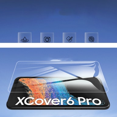 Design med full täckning: Vårt skärmskydd med böjda kanter är speciellt utformat för Samsung Xcover6 och erbjuder fullständig täckning som sträcker sig till kanterna på telefonens skärm för maximalt skydd.