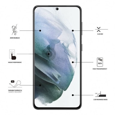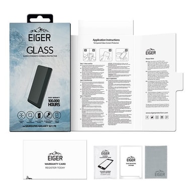 Eiger 2.5D Tempererat Skärmskydd Glas till Samsung Galaxy S21 FE - Klar Eiger 0.33mm Glas skärmskydd är tillverkad av högkvalitativt härdat glas och ger maximal skärpa och skydd till din enhet. Eiger's härdade glasskydd är gjord med premium japansk härdat glas och lim. Detta garanterar bästa skydd och vidhäftning. 9H hårdhet Eiger GLASS skärmskydd är 9 gånger hårdare än standardglas och har en 0,33 mm ultra-tunn, rundad kantdesign med hög klarhet. Oleofobbeläggning En oleofobisk beläggning har applicerats på displayskyddet och skapar en långvarig, oljebeständig och anti-fingeravtryckspärr som är lättare att rengöra och skyddar mot smuts och damm. 9H hårdhet Japanskt """"Asahi"""" glas 0,33 mm tunn HD-klarhet Oleofobisk beläggning Lätt att installera I Förpackningen: - Eiger Screen Protector Glass - Rengöringsduk - Mikrofiberduk - Dammavlägsnande klistermärke - Applikationsinstruktioner Displayskyddet passar Samsung Galaxy S21 FE