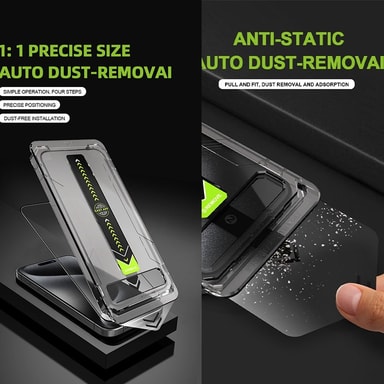 Enkel installationsprocess: Njut av en problemfri installation med vårt skärmskydd för iPhone 17 Pro. Det medföljande dammfria förvaringsfodralet och alkoholservetten säkerställer en ren och bubbelfri applicering. De exakta utskärningarna och det självhäftande skiktet möjliggör sömlös inriktning och säker fastsättning. 'Easy app'-tekniken förenklar processen, vilket gör det snabbt och enkelt för alla att installera. Säg adjö till frustrerande bubblor och felinriktningar, och hej till en perfekt skyddad skärm på några minuter. Kompatibel med iPhone 17 Pro.