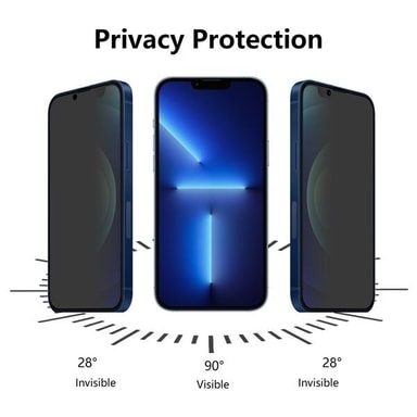 Skydd som ger privat utrymme Det här skärmskyddet är unikt på så sätt att skärmen enbart är synlig när den är rakt framför en, men när mobilen ses från sidan går det knappt att se något. Det här gör att ingen kan tjuvkika när du använder mobilen. Med det härdade glaset är den reptålig och håller mobilen mot yttre faktorer. - Kompatibel med: iPhone 13 Pro Max - Färg: Genomskinlig med mörkt filter - Hårdhet: 9H