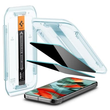 Spigen Glas.TR ""Ez Fit"" Privacy – det innovativa skärmskyddet som gör installationen enklare än någonsin! Om du tidigare har tvekat inför att montera ett skärmskydd, behöver du inte oroa dig längre. Med den medföljande, perfekt utformade monteringsramen placerar du skyddet exakt rätt på din mobilskärm. Installationen är så enkel och intuitiv att vem som helst kan klara den på några minuter.