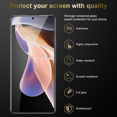 Härdat glas skyddar din mobiltelefons skärm. Den är tillverkad av specialbehandlat glas för att skydda skärmen optimalt mot repor och fall.