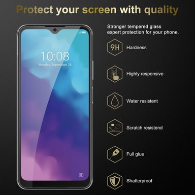 Härdat glas skyddar din mobiltelefons skärm. Den är tillverkad av specialbehandlat glas för att skydda skärmen optimalt mot repor och fall.
