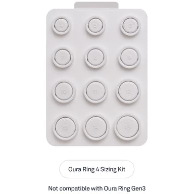 Tack vare Oura Ring 4 storlekskit kan du hitta din perfekta storlek. Kitet innehåller storlekarna 4 till 15, så att du kan testa och hitta den ringstorlek som passar ditt pek-, lång- eller ringfinger. Varje set kommer med en kupongkod.Läs mer om produkten