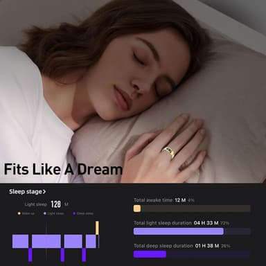 Upplev sömnövervakning på en ny nivå med denna smarta ring. Den registrerar automatiskt när du somnar, vaknar och analyserar din sömnkvalitet (djup/lätt sömn) genom tydliga grafer i appen. Oavsett om du letar efter en sleepring eller en smart ring för både män och kvinnor, hjälper den dig att optimera dina vanor för bättre sömn.
