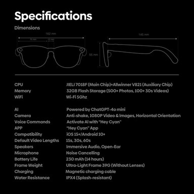 【Mångsidig funktionalitet】Kan ta högkvalitativa foto- och videoinspelningar, röstsamtal och AI-översättning, vilket gör den till en multifunktionell smart glasögonlösning.