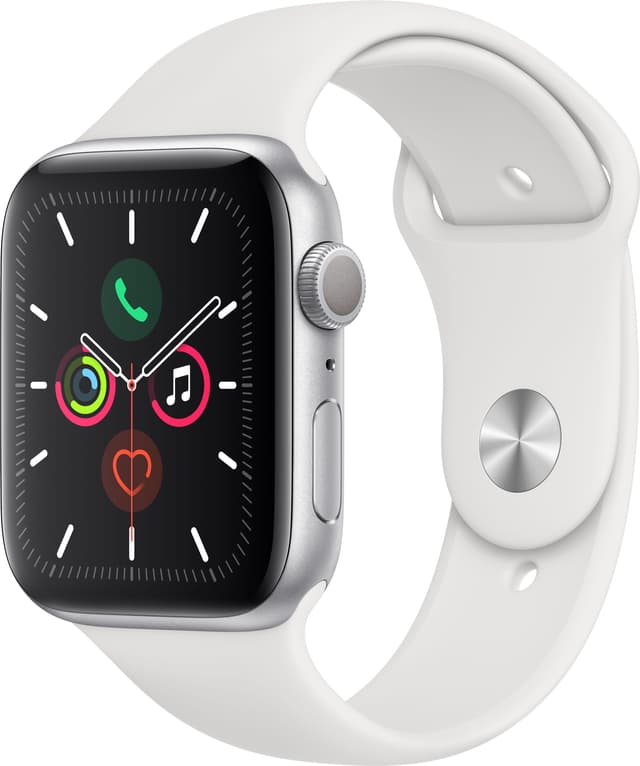 • Apple Watch Series 5 44mm (silver alu/vit sportband)
