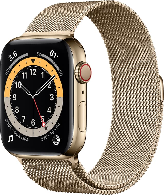 • Apple Watch Series 6 44mm GPS+Cellular (guld stål/guld Mil. loop)