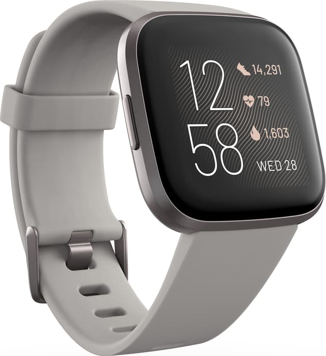 Fitbit Versa 2 smartwatch kombinerar en ren och elegant design med avancerade funktioner. Den låter dig använda röstkommandon för att sätta alarm, kontrollera vädret och mycket annat.Läs mer om produkten