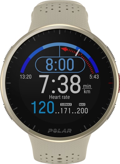 Se din statistik med kristallklar tydlighet på Polar Pacer Pros MIP-färgdisplay (Memory-In-Pixel). Den förbättrade skärmkontrasten säkerställer att dina data är lättlästa i alla ljusförhållanden, från det starkaste solljuset till det dunkla gymmet. Det intuitiva gränssnittet och den levande displayen gör det enkelt att navigera bland dina mätvärden och hålla dig informerad under hela träningspasset.
