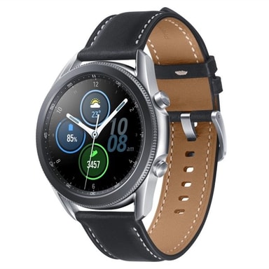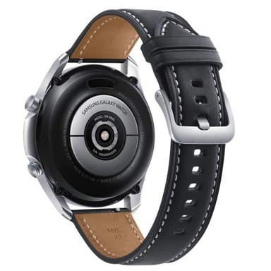 Samsung Galaxy Watch 3 45mm - Bluetooth - Mystic Silver Ej Nordic Version - Har inte Samsung Pay eller e-sim Enkelt att hantera meddelanden och samtal Avancerade hälso- och träningsfunktioner Sofistikerad design i rostfritt stål och premiumkänsla med armband i äkta läder Större display men en mer slimmad och lätt design som är bekväm att bära Den enda smartklockan med en roterande urtavla med hög precision för appnavigering En smartwatch med marknadens mest avancerade funktion för hälsoövervakning Klockan som håller ett öga på din hälsa. Galaxy Watch 3 kombinerar produktiviteten hos en smartphone och ledande hälsomätningsteknik i en premiumklocka med klassiskt utseende. Samsungs mest avancerade Galaxy Watch hittills – Galaxy Watch 3 gör det enkelt för dig att kontrollera ditt liv och din hälsa Den enda smartklockan med en roterande urtavla med hög precision för appnavigering Välj mellan två olika storlekar: 45 eller 41 mm, var och en med en unik urtavla. Den har en elegant design som fungerar dygnet runt med en unikt roterande urtavla Större display men en mer slimmad och lätt design som är bekväm att bära Dess stora display gör det enkelt att se och kontrollera klockan, som styrs med den roterande urtavlan. Galaxy Watch3 är tunnare, mindre och cirka 15 procent lättare än tidigare modeller och har en sofistikerad utformning med en slimmad ram som passar perfekt på handleden Premiumkvalitet ut i självaste armbandet Galaxy Watch3 har en design som toppas med ett armand av äkta läder. Åldrat läder skapar en snygg och naturlig look på utsidan, medan insidan är klädd med förstärkt läder som skyddar mot missfärgningar. Smart skönhet Komplettera signaturlooken för Galaxy Watch3 med det största urvalet av urtavlor hittills. Alla matchar klockans eleganta design, så välj din favorit. Skapa din egen kombination med över 40 funktioner och få en tydlig översikt av den information du behöver, samt enkel åtkomst till dina favoritappar. En hälsoövervakare på handleden Falldetektering att lita på Utforska utan rädsla. Galaxy Watch3 detekterar automatiskt hårda fall med sin förbättrade accelerometer, och skickar ett SOS-meddelande till din nödkontakt med dina platsuppgifter. Bättre sömn Galaxy Watch3 registrerar dina REM-cykler, djupsömn och total sovtid för att hjälpa till att betygsätta och förbättra kvaliteten på din vila. Samsung gick ihop med National Sleep Foundation för att inkludera informativt innehåll och sovtips i din enhet, för att hjälpa dig att förstå och förbättra din sömn Slå ditt personbästa och gör det igen Galaxy Watch3 har över 120 program för hemmaträning som du kan välja mellan, så att du enklare kan få in rörelse när du har tid. Streama den på telefonen och casta till tv:n. Träna och håll koll på din hjärtfrekvens i realtid. För mer precisa mätningar bör du använda Ridge Sport Band Bättre för varje steg Galaxy Watch3 har en löpningsguide som hjälper dig att hålla farten uppe och ger dig tips på vägen. Den avancerade algoritmen analyserar hur du rör dig för att hjälpa dig att förbättra din form och undvika skador. Du kan till och med mäta VO2-maxvärden och hålla kolla på dina dagliga, veckovisa och månadsvisa resultat, direkt från din telefon Håll igång konversationen När du får ett nytt SMS kommer din Galaxy Watch3 att visa din chatthistorik, så att du enkelt kan fortsätta konversationen där den avslutades. Du kan även se bilder utan att trycka någon extra gång, vilket gör det ännu enklare att hålla humöret uppe när du är ute på en löprunda Skapa smarta svar Håll kontakten med andra när du är på språng – utan att fumla för att hitta rätt knapp. Galaxy Watch3 har smarta svar som analyserar de texter och foton du mottar och ger dig förslag på svar inom olika kategorier, bland annat inom mat, firanden, selfies och mer Roligare meddelanden Bitmoji-dekaler gör kommunikationen roligare. Anpassa din Bitmoji så att den ser ut precis som du och använd Bitmoji-dekaler för att göra konversationer med vänner och familj roligare Musik som aldrig tar slut Din musik fortsätter att spela när du går från en enhet till nästa. Spela upp musik från Spotify på din Galaxy Note20. Öppna sedan Spotify-appen på din klocka för att enkelt byta låt från din Galaxy Watch3. Eller tryck och håll knappen ner på dina Galaxy Buds Live för att förföras av musiken Skapa en appgrupp Sätt ihop en grupp med dina favorit-Galaxy-appar som du kan använda under dagen. Hitta din telefon och se telefonens bilder från din klocka eller byt mellan enheterna så att du kan kontrollera din musik och eventuella påminnelser. Den kompletta partnern för din handled. Modell: SM-R840NZSAEUE