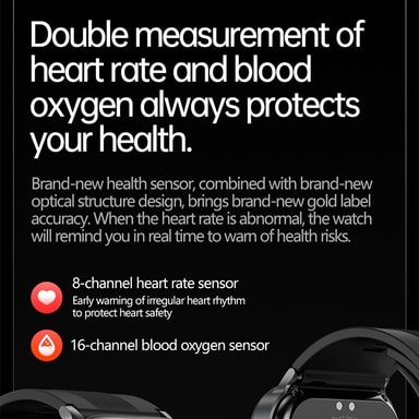 Avancerad EKG-funktion: Med hjälp av EKG-teknologi och AI-intelligent diagnos kan du ta EKG-mätningar med nanoglas direkt via klockan. Denna funktion ger dig en djupare insikt i din hjärthälsa och kan hjälpa dig att upptäcka eventuella oregelbundenheter. Den 2,06-tums AMOLED-retinaskärmen visar tydligt dina resultat. Perfekt för dig som vill ha en mer detaljerad bild av din hjärtfunktion och kunna dela informationen med din läkare. Med denna smartklocka får du en personlig hälsokontroll direkt på handleden.