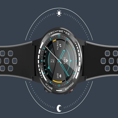 Klockan har en känslig touchskärm och är IP65-vattentålig. Använd den för att ställa in timer, få notiser om du sitter stilla för länge och bli meddelad när det ringer på din telefon.