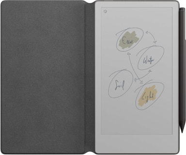 Det medföljande Mosaic Weave Book Folio syftar till att hålla din papperssurfplatta säker och stilfull. Fodralet fästs magnetiskt på din enhet och erbjuder väck-/sovfunktion och förvaring för Marker.