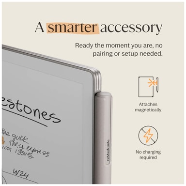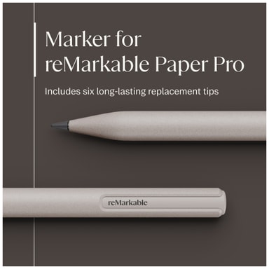 ReMarkable Paper Pro Marker Basic-stylus låter dig låsa upp din kreativitet och uppnå nästa produktivitetsnivå. Njut av avancerad anteckning och skissning med oklanderlig precision och översätt din hands rörelser till vackra konstverk. Den fästs magnetiskt på din enhet och dess funktion är batterifri. (Endast kompatibel med reMarkable Paper Pro - fungerar inte på någon annan reMarkable).