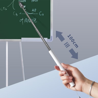 Bärbar och lätt: Tillverkad av en kombination av plast och rostfritt stål, är denna teleskopiska pekpenna både lätt och robust. Dess kompakta design gör den lätt att bära i fickan, väskan eller portföljen, vilket säkerställer att du alltid har den till hands när du behöver den. Den utdragbara funktionen gör att du kan justera längden till din föredragna räckvidd, medan den hållbara konstruktionen säkerställer långvarig prestanda. Ta med dig denna bärbara pekpenna vart du än går och var beredd på alla presentations- eller undervisningstillfällen.