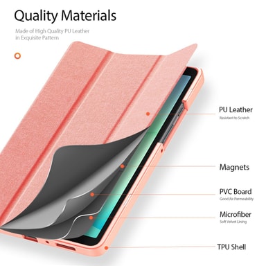 Upplev optimalt skydd och funktionalitet med DOMO Series. Fodralet är tillverkat av premium PU-läder och PC-material för hållbarhet och elegant utseende. Det mjuka mikrofiberfodret skyddar din skärm från repor, medan den smarta tri-fold-funktionen möjliggör handsfree-användning. Fodralet är designat för att minimera risken för skador vid fall och stötar.