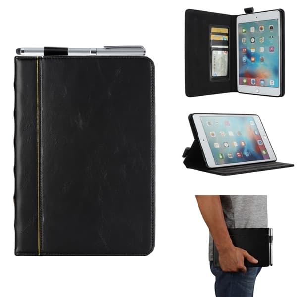 Svart fodral med ställ till apple ipad mini 4/3/2/1. Fodralet har en bra passform och skyddar din enhet från repor, stötar och annat slitage. Alla knappar och portar är lättillgängliga. Du kan använda fodralet som stativ till din enhet och njuta av att titta på film, läsa, spela m.m. Specifikation kompatibel med: apple ipad mini 4, ipad mini 3, ipad mini 2, ipad mini material: pu-läder stil: horisontell flip med stativ, kortfickor, fotoram och pennhållare. Egenskaper: stötsäker, skyddar mot repor, slitstark.