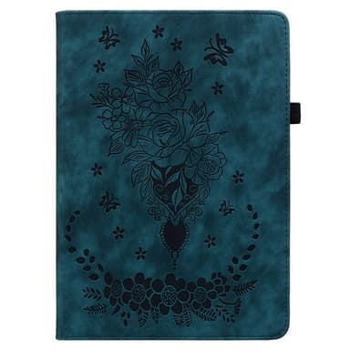 För Samsung Galaxy Tab A11 Fodral Skydd Med Rosblomsprägling - BlåTillverkat av PU-läder och TPU-material som ger starkt dubbellagerskydd mot vardagligt slitage, stötar, repor och märken.Läs mer om produkten