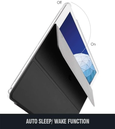 Heltäckande och justerbart fodral: Detta fodral till iPad Air 3 och iPad Pro 10.5"" täcker och skyddar både bak- och framsidan av din läsplatta. Fodralet går även att justera och vika för att skapa ett ställ som gör att du på ett bekvämt och praktiskt vis kan titta på och använda din iPad utan att du behöver hålla i den.