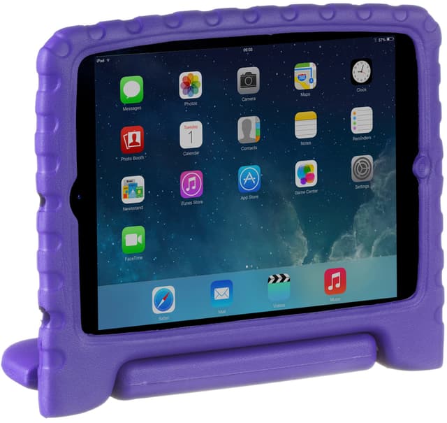 Detta MyDoodle-fodral passar till iPad mini, mini 2 eller mini 3. Det barnvänliga fodralet ser till att surfplattan är säker i ditt barns händer tack vare stöttåligt EVA-skum som certifierats som ett giftfritt alternativ. Alla portar nås enkelt även när fodralet är på. Det praktiska handtaget kan även vridas för att användas som stativ.