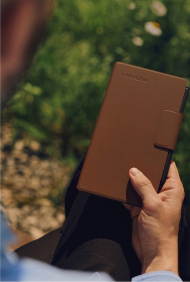 De inbyggda magneterna förankrar din reMarkable Paper Pro Move säkert på plats. Magneterna är tillräckligt starka för att hålla din enhet men är enkla att ta bort.