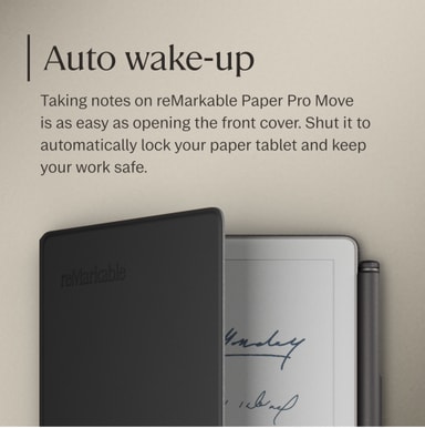 reMarkable Paper Pro Move Premium Leather Book Folio säkerställer att din reMarkable Paper Pro Move är skyddad med stil. Fodralet fästs magnetiskt på din enhet samtidigt som det lämnar utrymme på sidan för din reMarkable Marker.