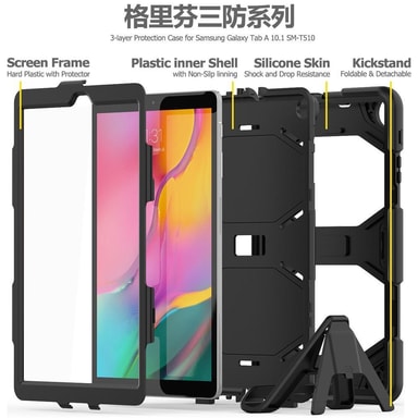 Military Duty Silikon PC Combo Shell med kickstand för Samsung Galaxy Tab A 10.1 (2019) SM-T510 - Svart