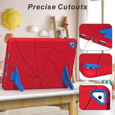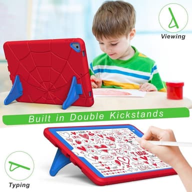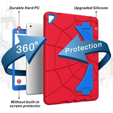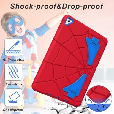 Ett barnanpassat skal med spindelnätsmotiv och ställfunktion till er surfplatta som skyddar bra mot stötar och tappskador.