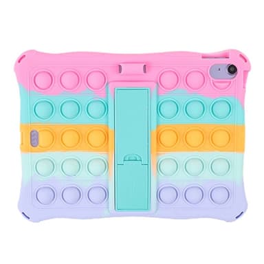 Detta stöttåliga Armor Popit-skal är tillverkat av högkvalitativt naturligt silikon och PC, vilket gör det giftfritt, elastiskt, miljövänligt, återanvändbart och hållbart. Den smarta kombinationen av ett skyddande skal och den populära bubbel-fidget-leksaken ger både funktion och nöje. Upphöjda fidget-bubblor skyddar skärm och kamera mot repor och fall. Det inbyggda stället och det söta tecknade designen gör det enkelt att titta på surfplattan utan att hålla i den. Medföljande rem gör det lätt att bära med sig. En trendig accessoar som också fungerar som en praktisk stressleksak.