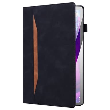 Detta eleganta fodral i PU-läder och TPU-material kombinerar stil med funktionalitet. Det slitstarka materialet ger långvarigt skydd för din surfplatta, samtidigt som det ser professionellt ut. En praktisk pennhållare på sidan gör att du alltid har din stylus nära till hands (penna ingår ej). Inbyggda kortfack gör det enkelt att bära med sig viktiga kort, och det integrerade stället möjliggör bekväm handsfree-användning. Ett elastiskt band håller fodralet säkert stängt och skyddar enheten mot repor och slitage.