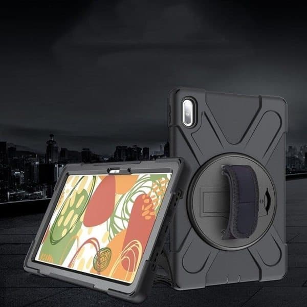Mjukt silikonskydd till Huawei MediaPad M6 10.8. Detta skal skyddar din surfplatta mot stötar och repor. Stöd som kan roteras 360 grader för att hålla upp surfplattan. Perfekt utformad för att passa till just denna modells knappar och hål för kablar.