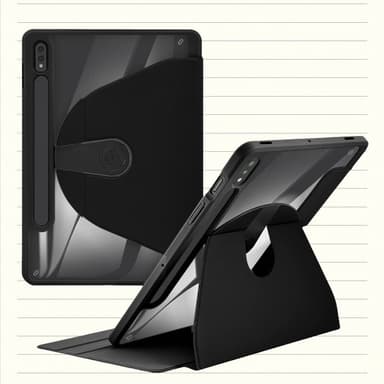 360° Rotation: Det här fodralet har en 360-graders roterande design som gör att du enkelt kan växla mellan stående och liggande orientering för optimal visning och skrivupplevelse.