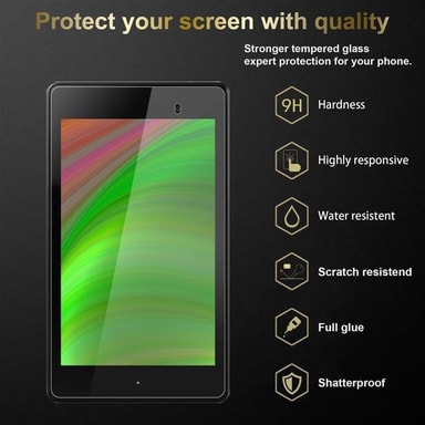 Härdat glas skyddar skärmen på din surfplatta. Den är tillverkad av specialbehandlat glas för att skydda skärmen optimalt mot repor och fall.