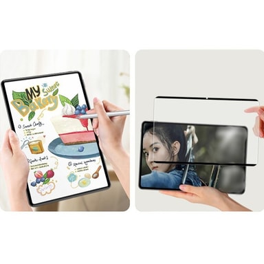 Matt yta: Den matta ytan minskar effektivt fingeravtryck och blänk, vilket ger en behagligare visuell upplevelse och bättre skriv- och ritkänsla. Ytan efterliknar känslan av papper, vilket gör den idealisk för anteckningar och skisser på surfplattan.