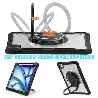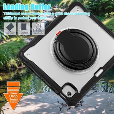 Detta robusta fodral är utformat för att ge din surfplatta ett överlägset skydd i vardagen. Med ett 360-graders roterbart handtag kan du enkelt hänga upp enheten var som helst och bära den på flera sätt. De förstärkta silikonthörnen absorberar stötar effektivt och skyddar mot fall och slag. Det dubbla lagerskyddet kombinerar ett slitstarkt TPU-ytterlager med ett hårt PC-inre skal för maximal säkerhet. Det inbyggda stället möjliggör justerbara betraktningsvinklar i både stående och liggande läge. Ett praktiskt pennfack på sidan håller din stylus nära till hands (stylus ingår ej).