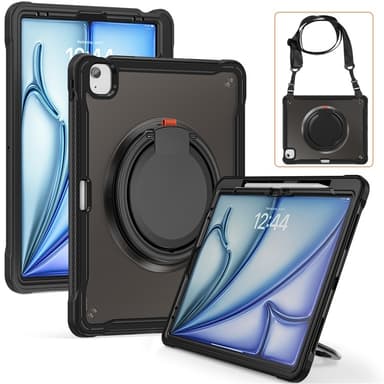 Detta robusta fodral kombinerar funktionalitet och skydd i ett smart designat paket. Med ett 360-graders roterbart handtag kan du enkelt hänga din enhet var du vill, vilket ger flexibilitet i vardagen. De förstärkta silikonthörnen absorberar stötar effektivt och skyddar din surfplatta mot fall och slag. Den dubbla skyddslagret med TPU-överdrag och hårt PC-skal ger ett heltäckande skydd. Det inbyggda stället möjliggör justerbara betraktningsvinklar i både liggande och stående läge. En justerbar nylonrem med snäpplås gör det enkelt att fästa fodralet i exempelvis bilsätet – perfekt för underhållning på språng. Dessutom finns ett praktiskt pennfack på sidan för säker förvaring av din stylus (stylus ingår ej).