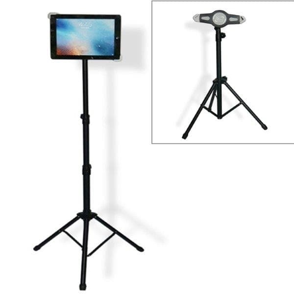 Stativ till surfplatta Universellt stativ till surfplatta kompatibelt med alla 7-10 tums enheter. Tillverkad av aluminiumlegering och med sin lätta konstruktion och kompakta storlek, är denna ipad hållare perfekt för utomhus och resor. Stativet har 360 graders vinkelvy och höjdjustering. Tablettstället kan placeras på golvet, på skrivbordet eller på någon plan yta, så att 360 graders rotation och höjdjustering (från 0,7 till 1,4 m).