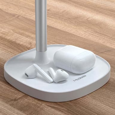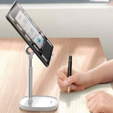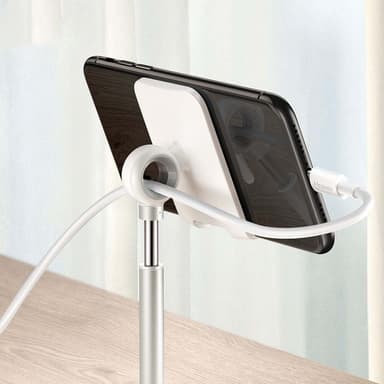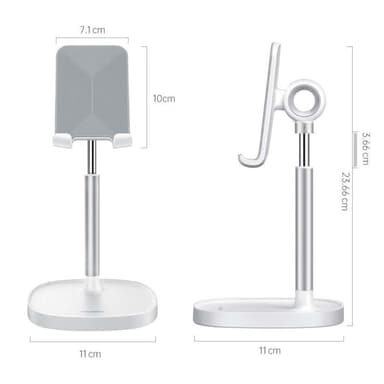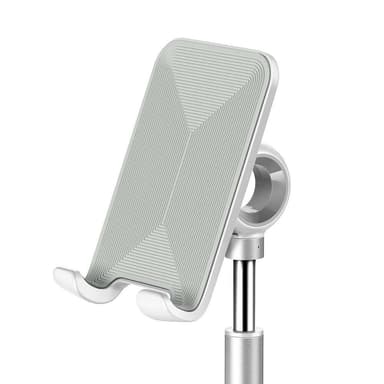 Universiellt mobilstativ passar alla mobiltelefoner och surfplattor. Kan roteras 360grader i hållaren. Tilt up till 85grader. Tillverkad av aluminium i en smidig design. Höjden kan justeras mellan 200 till 360mm. Plattan täcks av halkfri silikon för mer stabilitet. Vilkt 230g.