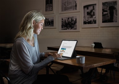 Logitech Slim Folio Pro tangentbordsfodral förvandlar ditt 12.9-tums iPad Pro till en bärbar dator, så du kan arbeta bekvämt var du än befinner dig. Den passar din iPad perfekt och skyddar den från repor, stötar och fläckar.Läs mer om produkten