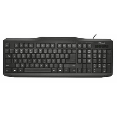 Robust, spilltåligt tangentbord med Nordisk layout för problemfri och långvarig användning.