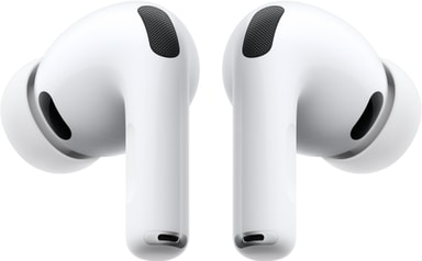 Apple AirPods Pro Gen 3, helt trådlösa hörlurar, är fullpackade med avancerad teknik, inklusive förbättrad aktiv brusreducering, realtidsöversättning och ännu bättre ljudkvalitet. Njut av upp till 24 timmars batteritid med MagSafe-fodralet.Läs mer om produkten