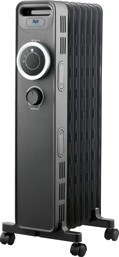 Apt Therma oljeelement 1000W ger jämn och tyst värme med 5 fenor för effektiv rumsuppvärmning. Den har 3 värmelägen, justerbar termostat, tippskydd och överhettningsskydd.Läs mer om produkten